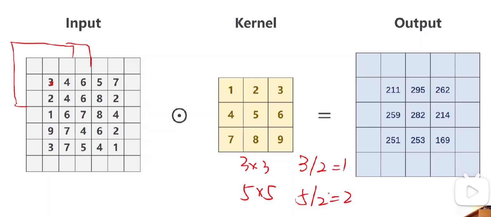 若要输出和输入的W、H相同,就用填充。如上图,若卷积为3*3就填1,5*5就填2