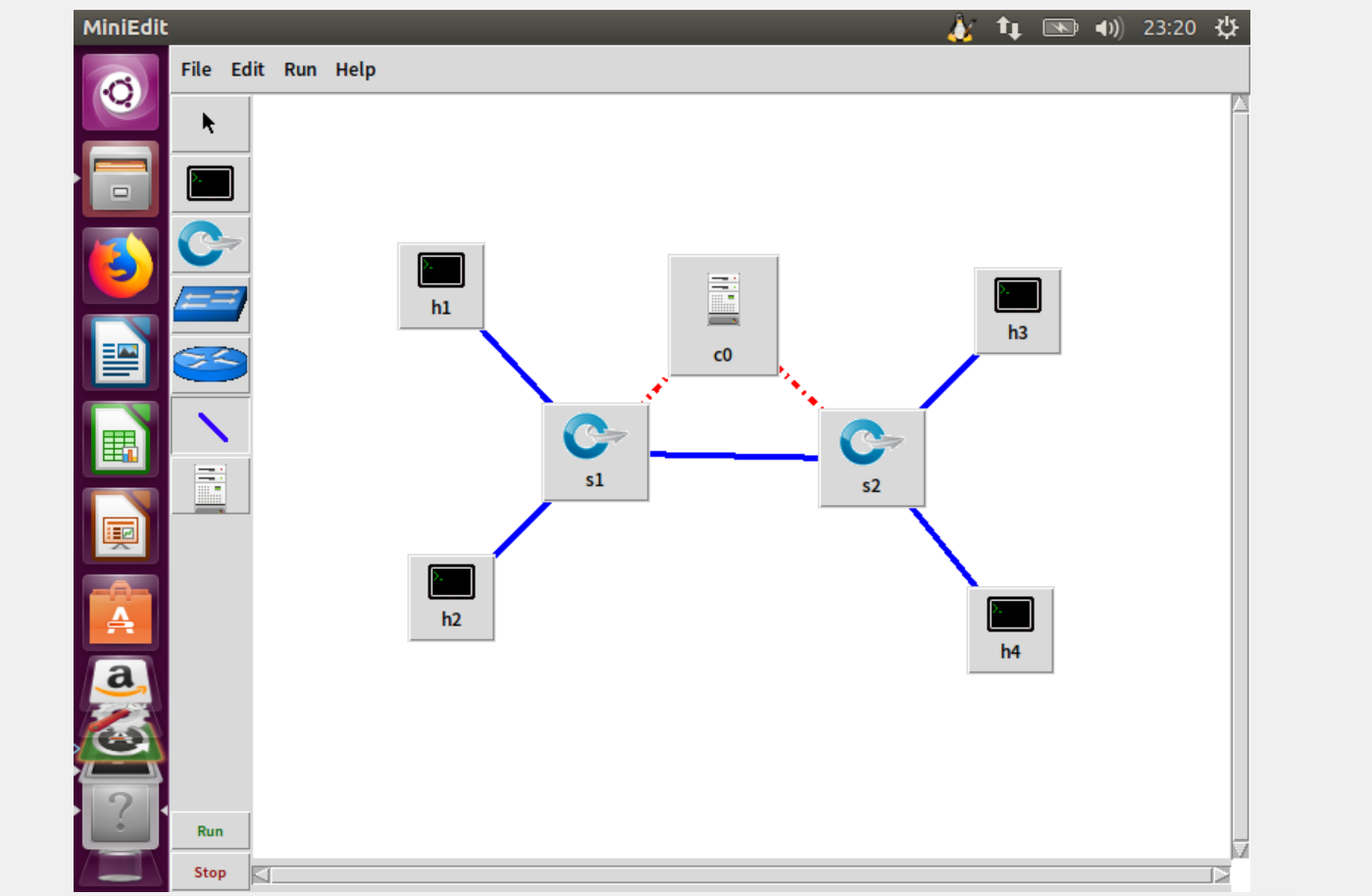 $ sudo ./mininet/examples/miniedit.py //在 Mininet 安装目录下执行
