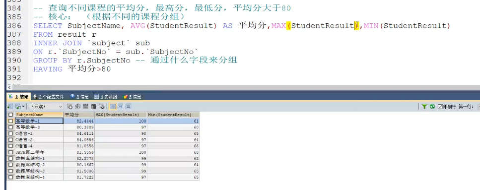 成绩表和学生左联,where筛选编号为01 并且成绩>80