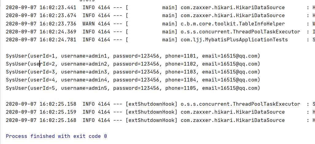@SpringBootTest class MybatisPlusApplicationTests { //继承了BaseMapper,所有的方法都来自己的父类,我们也可以编写自己的扩展方法 @Autowired private UserMapper userMapper; @Test void contextLoads() { //参数是一个wrapper, 条件构造器 暂时不用所有为null //所以为查询所有用户 List<SysUser> list = userMapper.selectList(null); list.forEach(System.out::println); } }