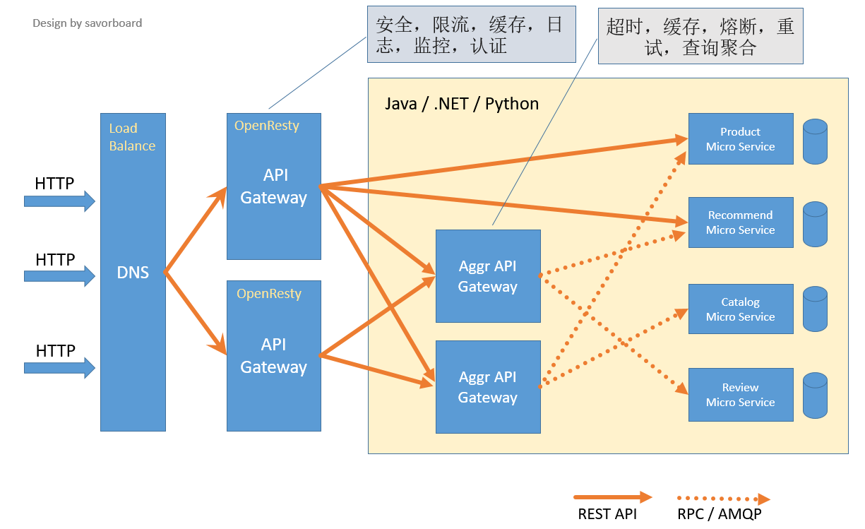 除了单点问题,还有一个问题,网关需要承担日志,监控,安全,服务发现,版本控制等,甚至超时,熔断,重试,聚合查询等职能,这很容易造成性能问题。
