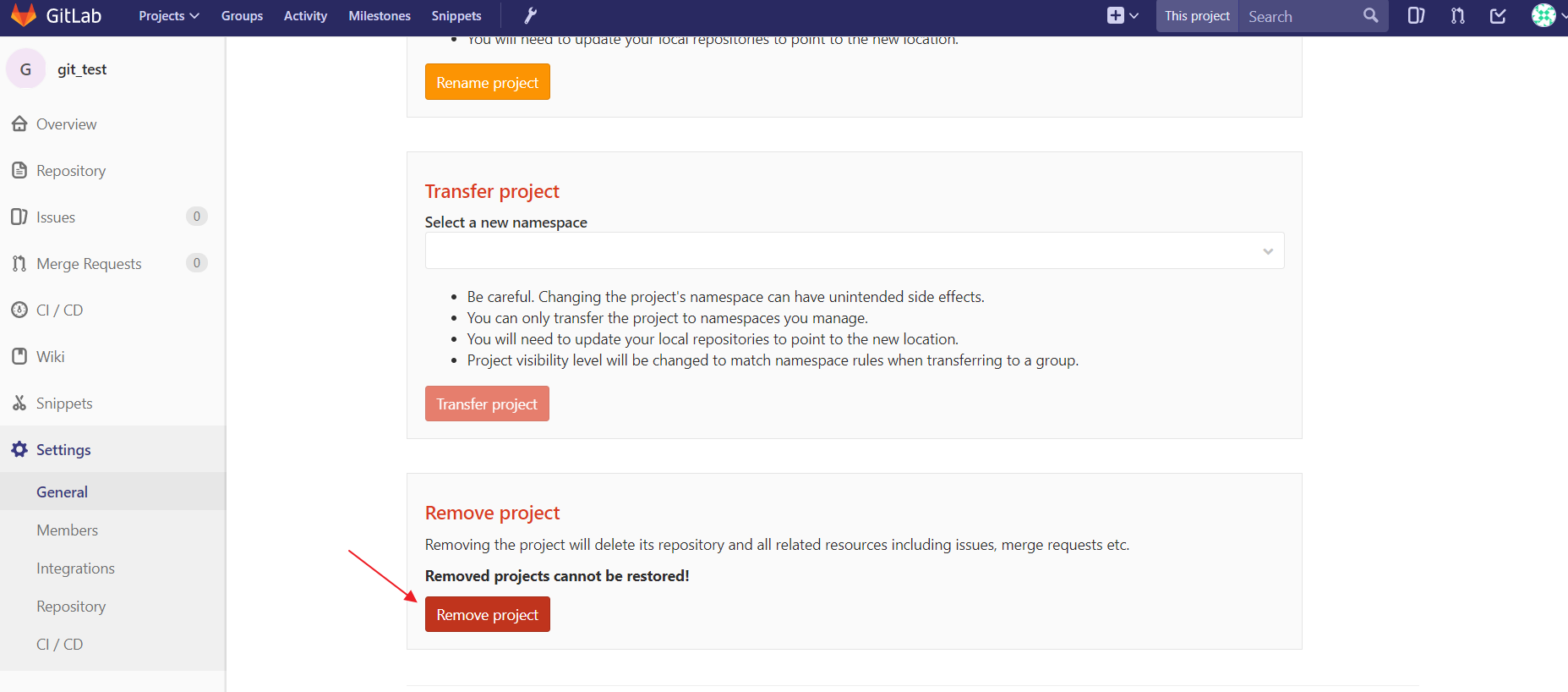 再看看gitlab页面 看看仓库回来了吗