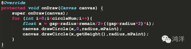 上面定义了圆的半径和圆间距,同时初始化了这些值并且获取了需要画的圆数量。