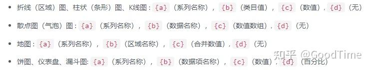 formatter: '{b0}: {c0}<br />{b1}: {c1}',                    // 提示框浮层内容格式器,支持字符串模板和回调函数两种形式,模板变量有 {a}, {b},{c},{d},{e},分别表示系列名,数据名,数据值等,具体见下图