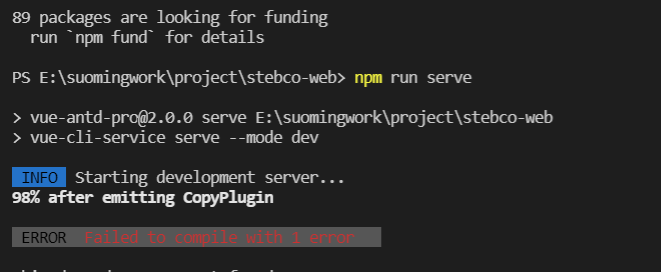 然后:PS E:\suomingwork\project\stebco-web> npm run serve