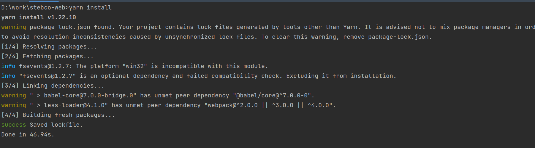 1.PS E:\suomingwork\project\stebco-web> npm install -g yarn