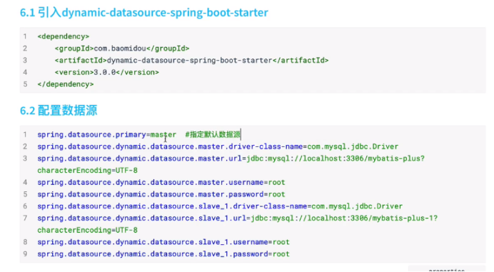 注意:并没有主从同步,详细开开发文档:https://mp.baomidou.com/guide/dynamic-datasource.html#文档-documentation