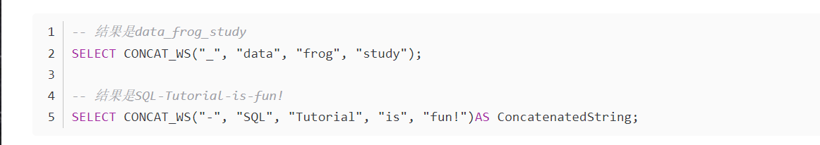 CONCAT_WS函数把多字段拼接,字段间使用同样的拼接符(会自动跳过NULL)