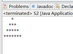 package Second; public class S2 { /** * @param args */ public static void main(String[] args) { // TODO Auto-generated method stub for (int i = 1; i <= 4; i++) { for (int j = 1; j <= 4 - i; j++) { System.out.print(" "); } for (int k = 1; k <= 2 * i - 1; k++) { System.out.print("*"); } System.out.println(); } System.out.println(); System.out.println(); System.out.println(); System.out.println(); } }