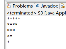 package Second; public class S3 { /** * @param args */ public static void main(String[] args) { // TODO Auto-generated method stub for (int i = 1; i <= 5; i++) { for (int j = 1; j <= 6 - i; j++) { System.out.print("*"); } System.out.println(); } } }
