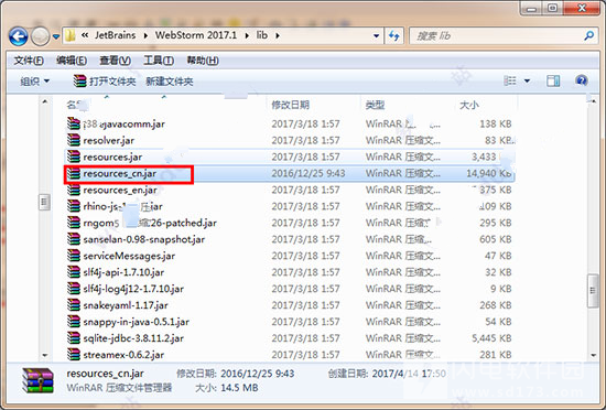 2、将.\Webstorm 2017.1\lib目录下的resources_en.jar文件复制出来,并更名为resources_cn.jar。