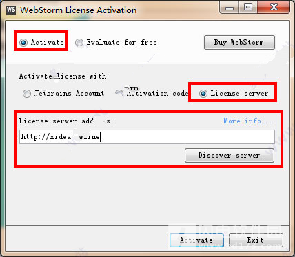 4、安装完成后运行桌面快捷方式,弹出注册窗口选择Activate》License Server》输入“http://xidea.online”,然后点击“Activete”完成认证即可