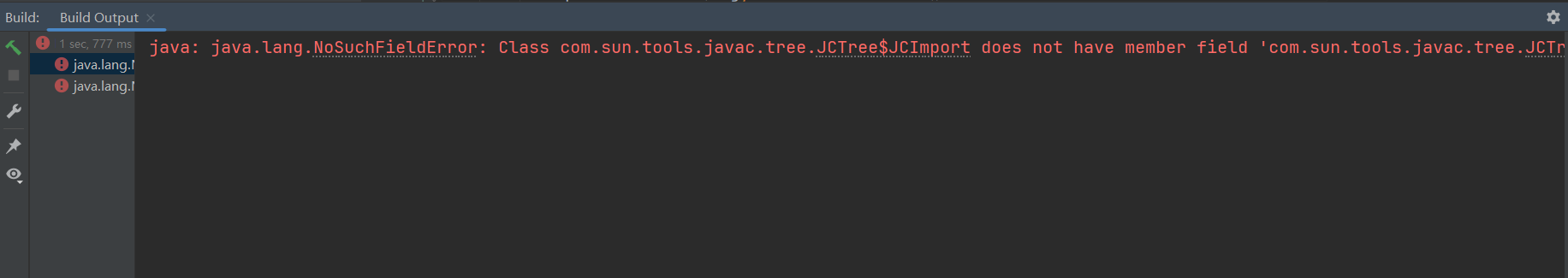 java: java.lang.NoSuchFieldError: Class com.sun.tools.javac.tree.JCTree$JCImport does not have member field 'com.sun.tools.javac.tree.JCTree qualid'