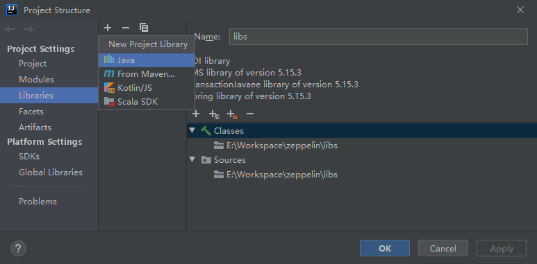 - 点击 File -> Project Structure -> Project Settings -> Libraries