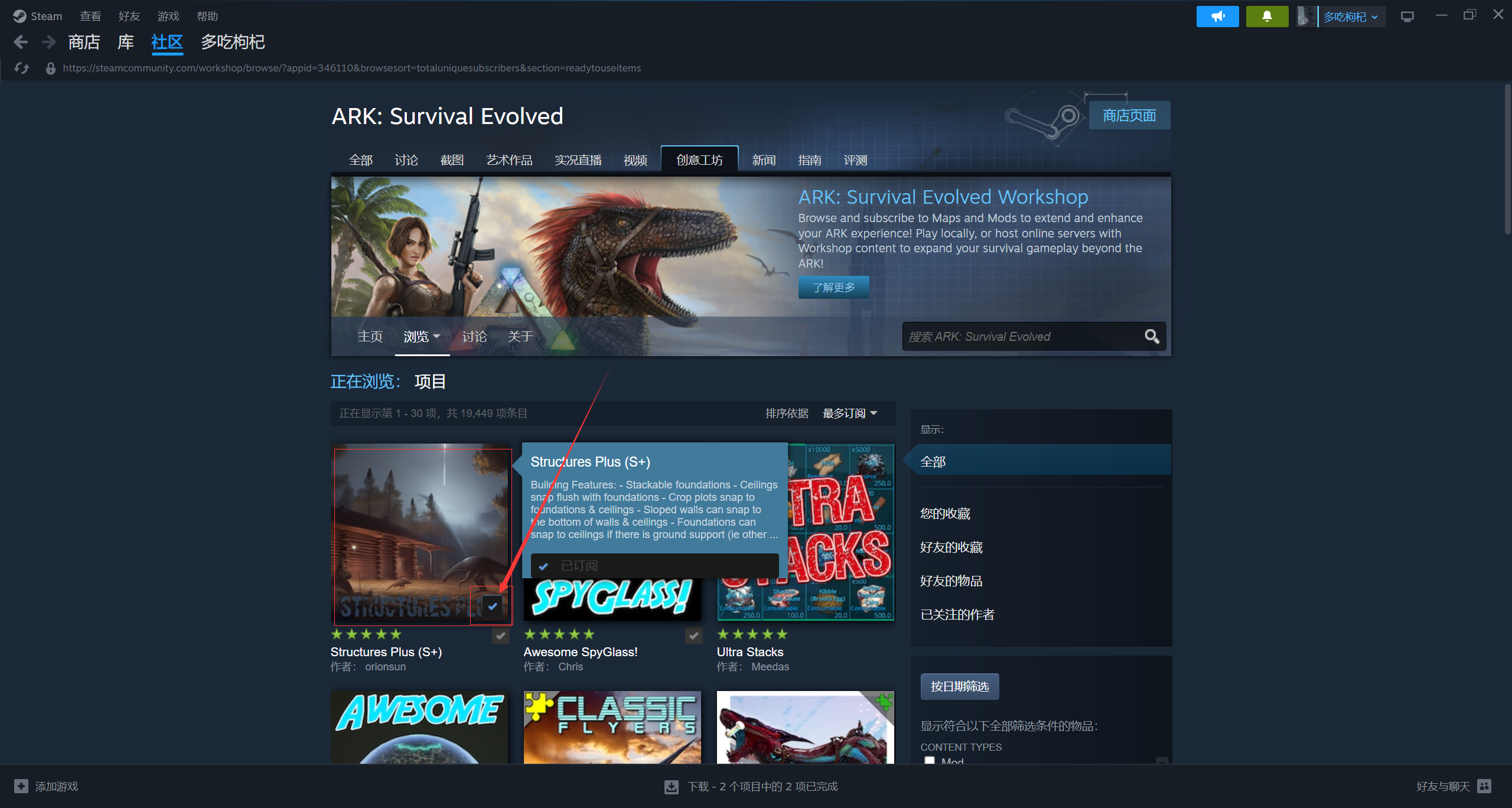 鼠标移动到图片上,图片右下角出现绿色加号就可以直接订阅,订阅前六个mod,第五个不订阅
