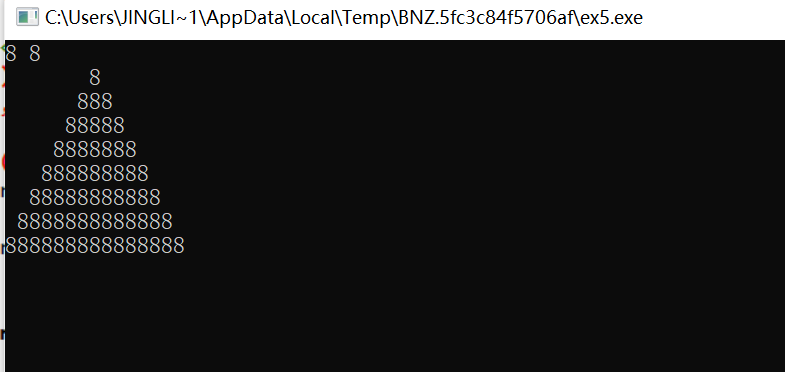 #include <stdio.h> void draw(int n, char symbol); #include <stdio.h> int main() { int n, symbol; while(scanf("%d %c", &n, &symbol) != EOF) { draw(n, symbol); printf("\n"); } return 0; } void draw (int n, char symbol){ int line,b,c; for (line=1;line<=n;line++) { for(b=1;b<=n-line;b++)printf (" "); for (c=1;c<=2*line-1;c++) printf ("%c",symbol); printf ("\n"); } }