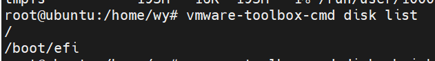 执行vmware-toolbox-cmd disk list命令查看磁盘挂载点,可以看到有两个挂载点: