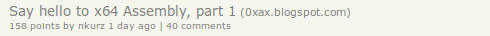 And all who took a part in discussion at Reddit and Hacker News. There were many opinions, that first part was a not very clear for absolute beginner, that's why i decided to write more informative posts. So, let's start with second part of Say hello to x64 assembly.