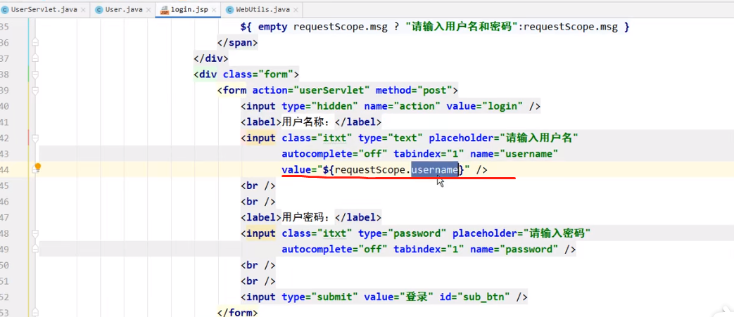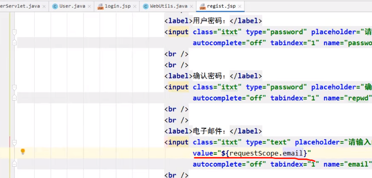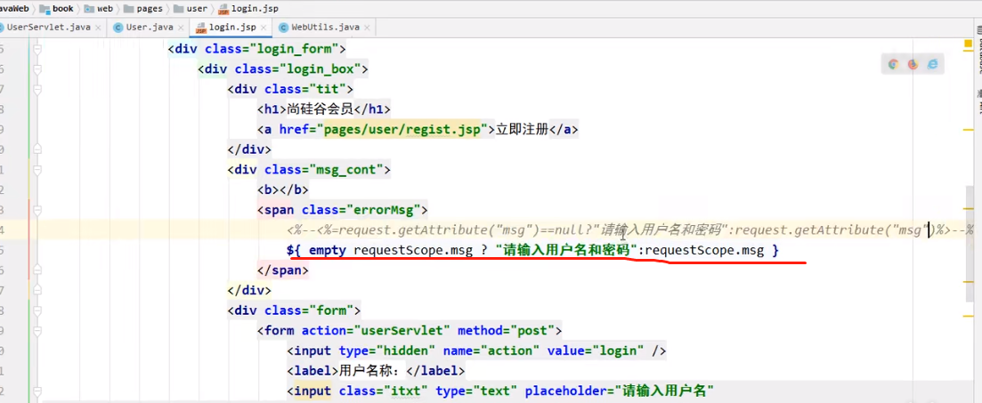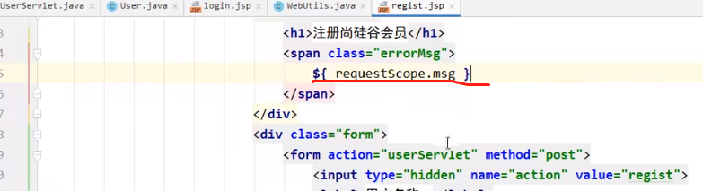 用EL表达式替换jsp表达式脚本的错误信息和回显: