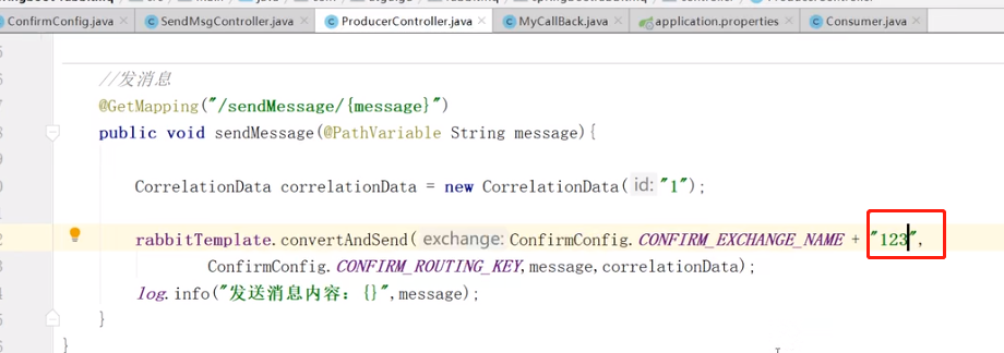 故意写错routingkey: