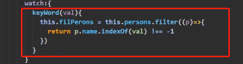 用计算属性代替watch实现过滤,其中 indexof方法是判断是否包含,返回值为-1代表不包含: