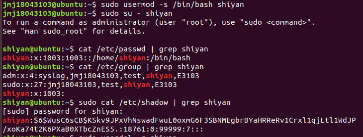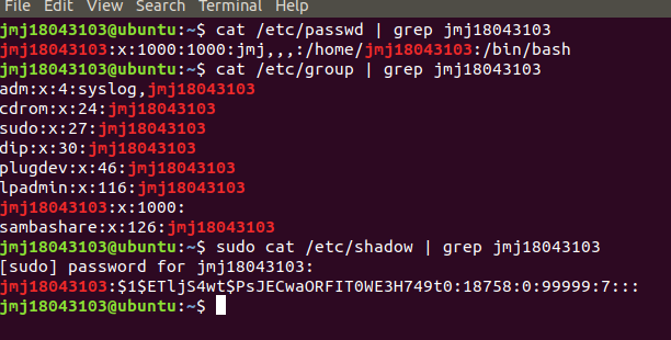 | (1)如何在与用户有关的三个文件中查看当前用户的信息? | |