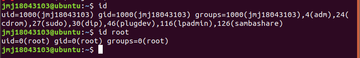 | (2)用id命令查看当前用户相关信息 | |