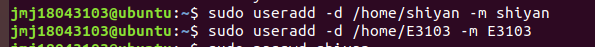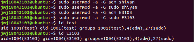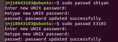 | (3)创建两个账号,一个账号为test,另外一个账号以大写E开头加上你自己学号尾数4位,两个账号分别设置密码及管理员权限,账号设置完成后,切换账号简单查看信息后,删除test账号,保留另一账号,以备后续操作。 | |