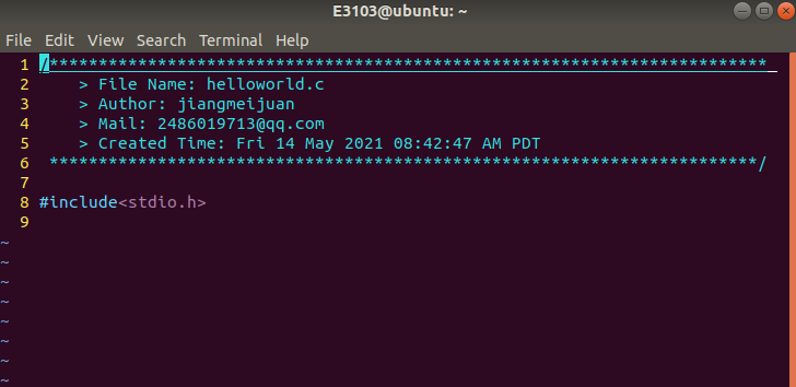 d)创建并打开一个以.c结尾的文件,如vim helloworld.c