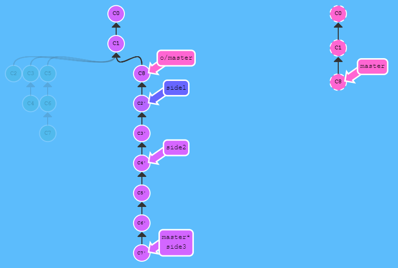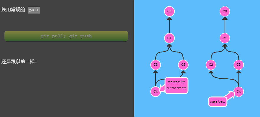 很方便,但是这种“改写历史”的方法对大家一起使用的远程分支是无效的哦!