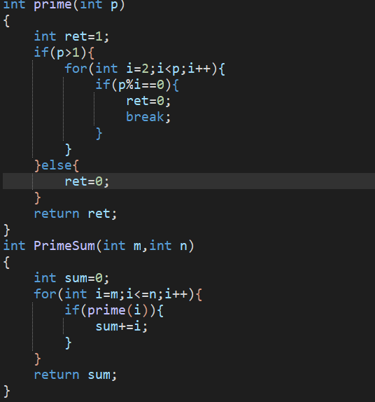 例如:当定义一个函数来求一定范围内素数和时,可以定义这样的函数: