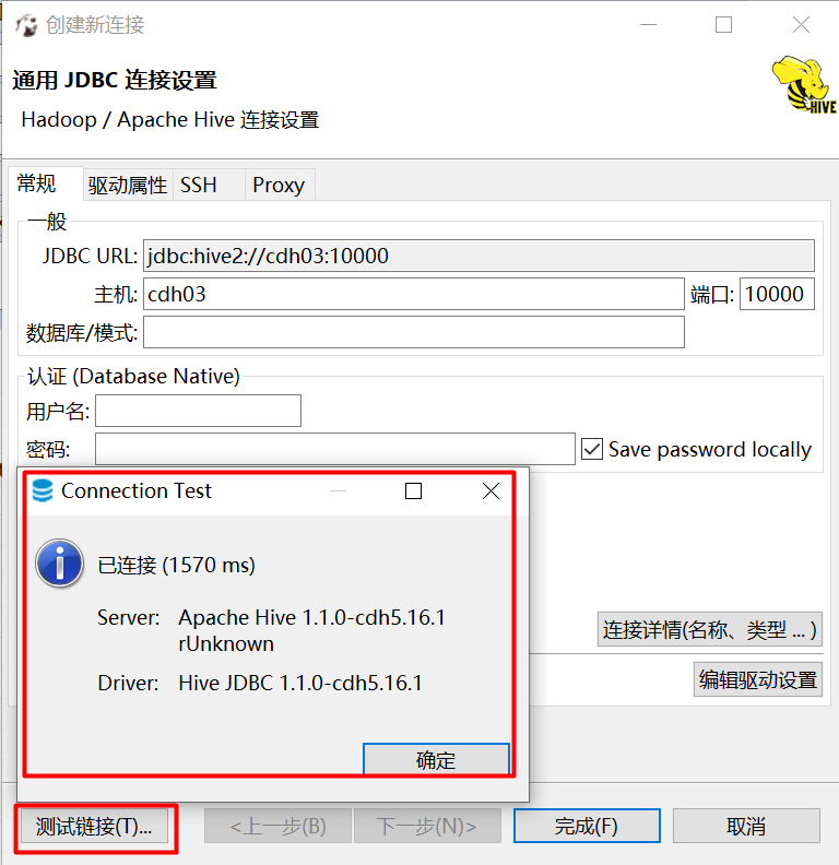 第五步,测试连接成功,接下来就可以访问Hive中的表了