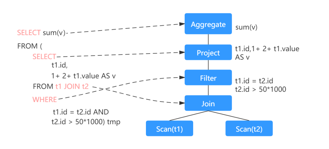Logical plan --> Optimized Logical Plan。逻辑优化阶段使用基于规则的优化策略,比如谓词下推、投影裁剪等。经过一些列优化过后,生成优化的逻辑计划Optimized Logical Plan。