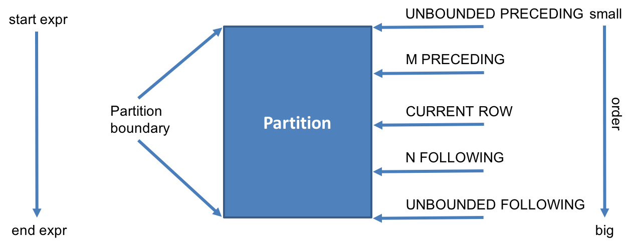 ROWS BETWEEN [ { m | UNBOUNDED } PRECEDING | CURRENT ROW] [ AND [CURRENT ROW
