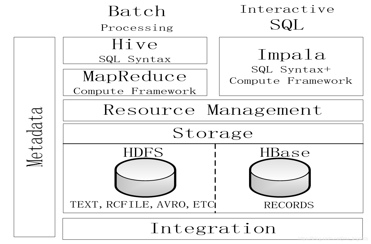 (1)Hive与Impala使用相同的存储数据池,都支持把数据存储于HDFS和HBase中