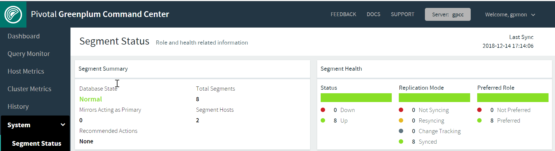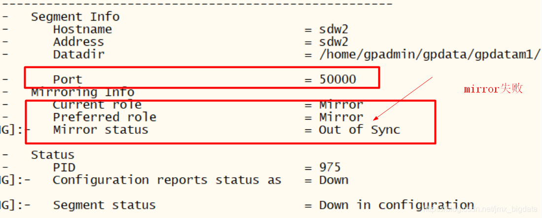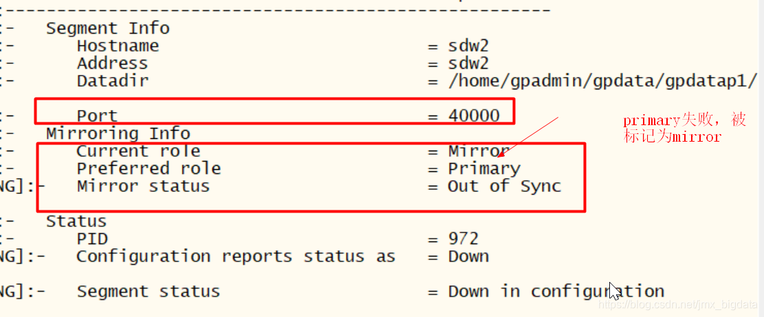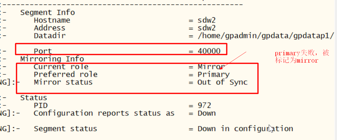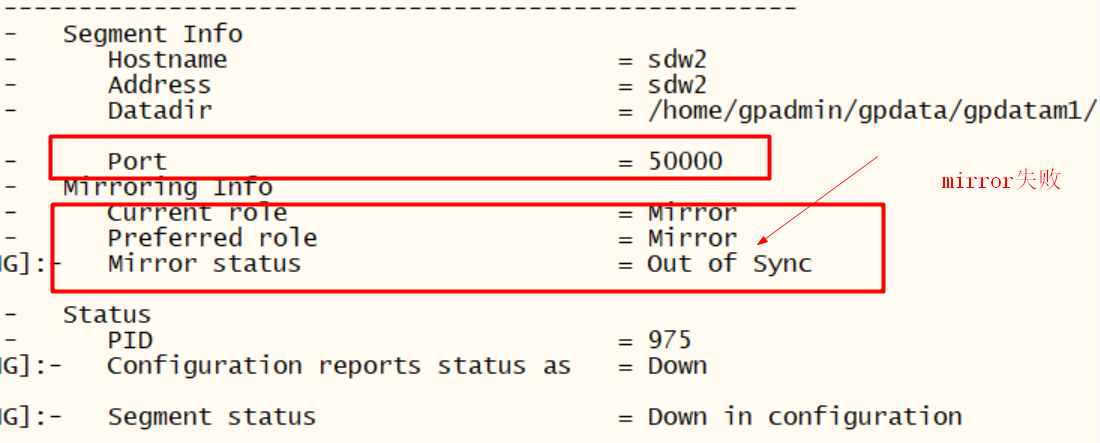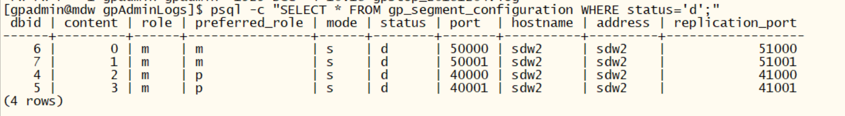使用select * from gp_segment_configuration查看segment角色信息,如下图所示: