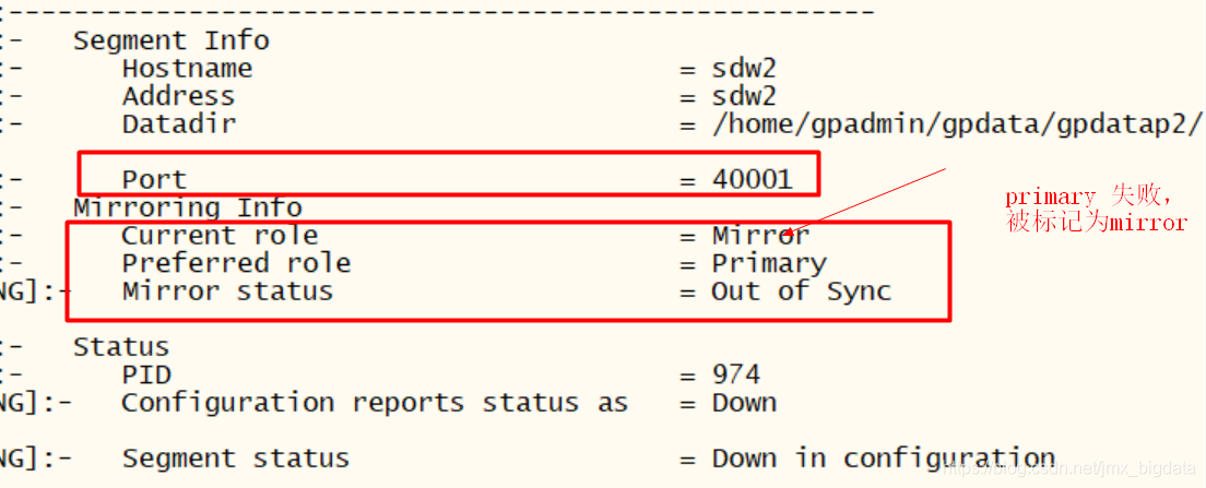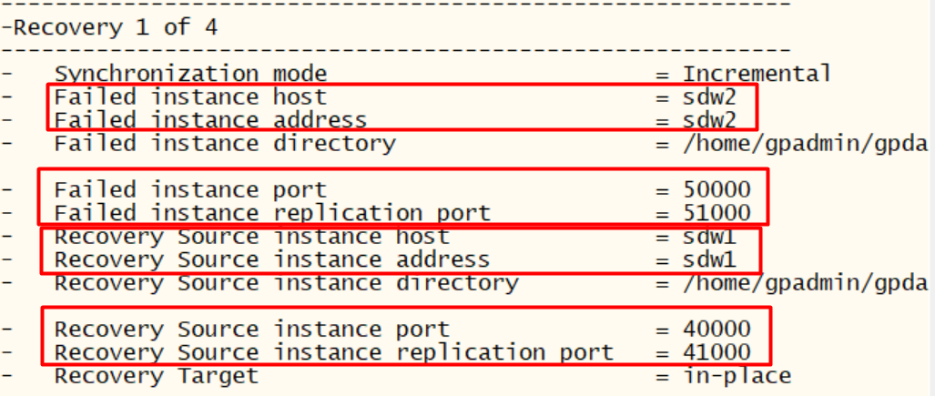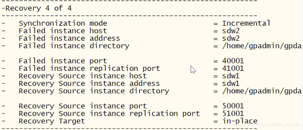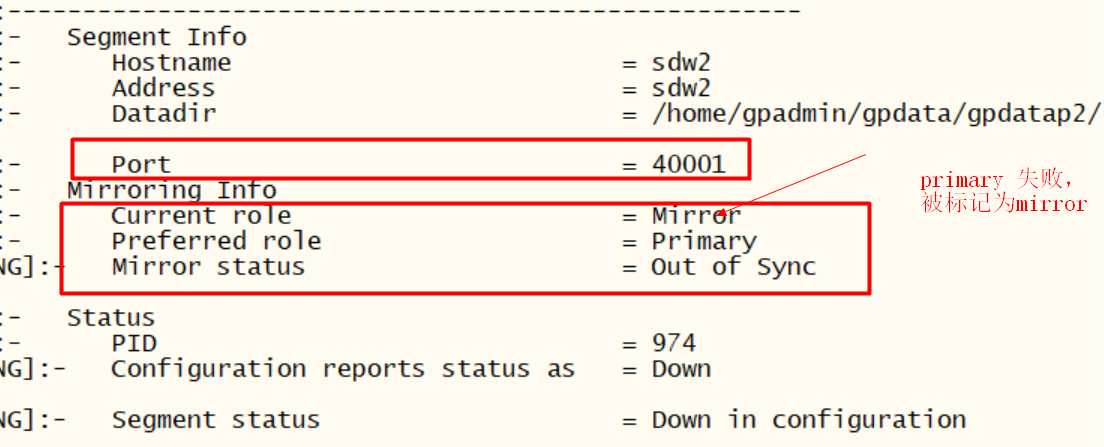 3.3运行gprecoverseg命令,使用-r参数将segment恢复到原来初始化时的角色设置
