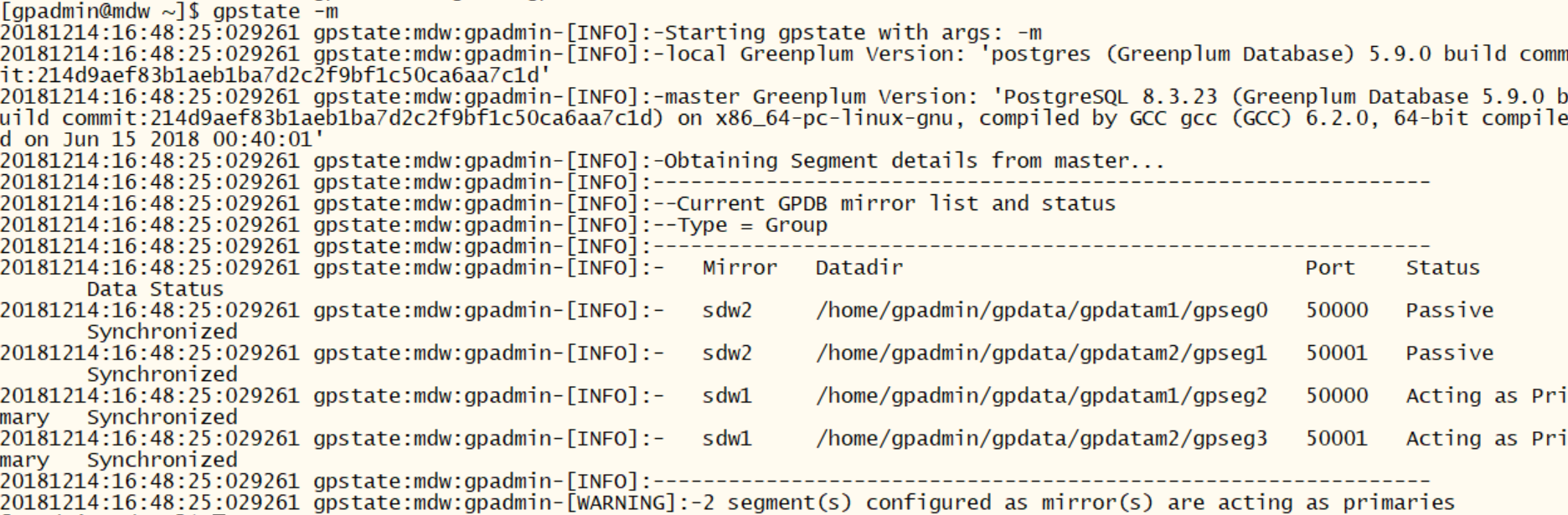 3.2运行gpstate 命令用于验证重新同步过程状态