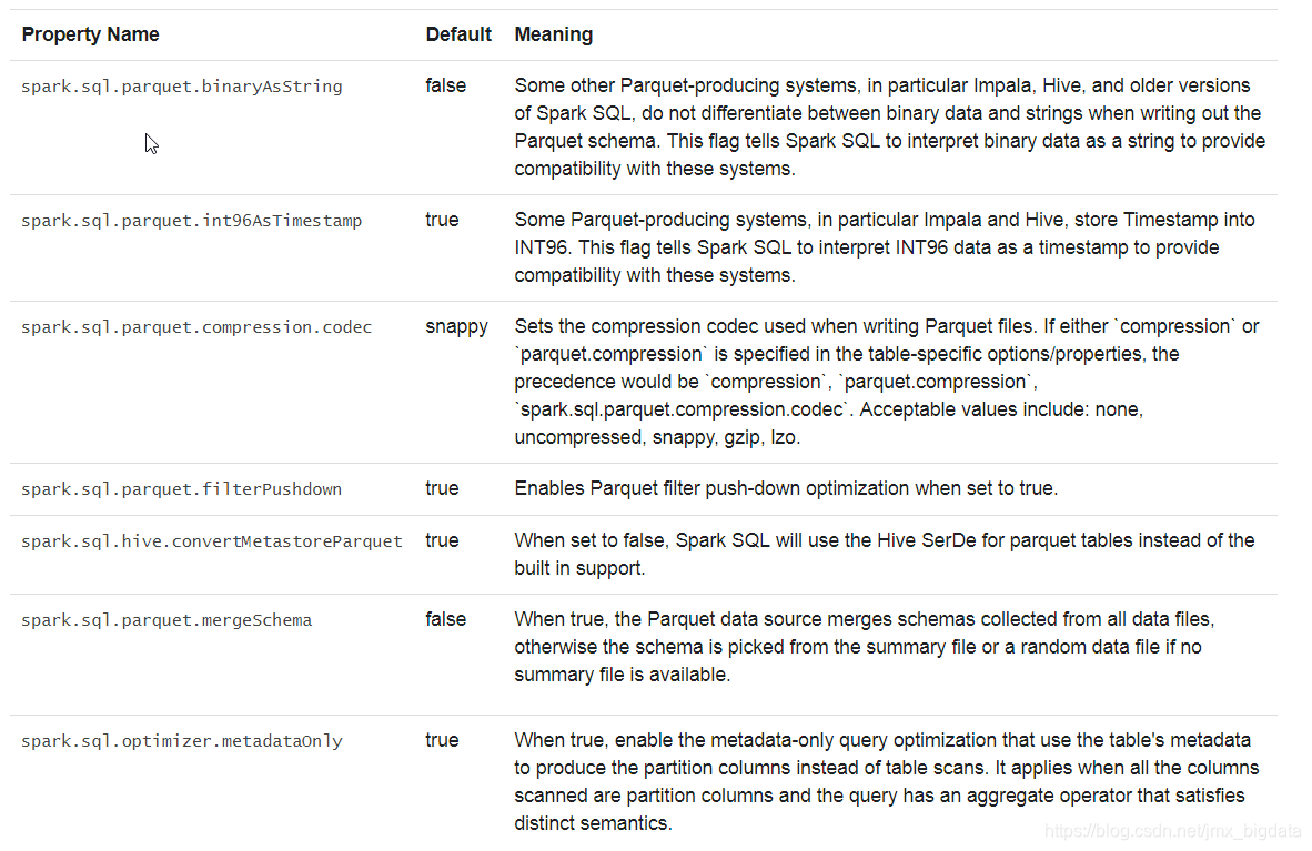 创建Hive表时,需要定义此表应如何从文件系统读取数据以及如何向文件系统中写入数据,即“输入格式”和“输出格式”。您还需要定义此表如何将数据反序列化为row,或将row序列化为数据,即“serde”(序列化和反序列化)。以下选项可用于指定存储格式( “serde”, “input format”, “output format”),例如CREATE TABLE src(id int) USING hive OPTIONS(fileFormat 'parquet')。默认情况下,我们将表文件作为纯文本读取。请注意,spark创建表时不支持Hive的存储处理程序(storage handler),您可以通过Hive使用Hive的存储处理程序(storage handler)创建表,并使用Spark SQL读取它。