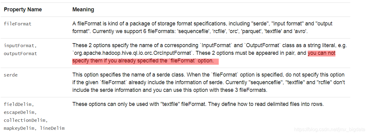 1.指定Hive表的存储格式