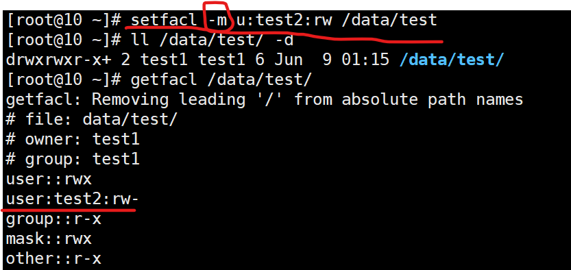 (5)、清理/data/test目录及其下所有文件的acl权限