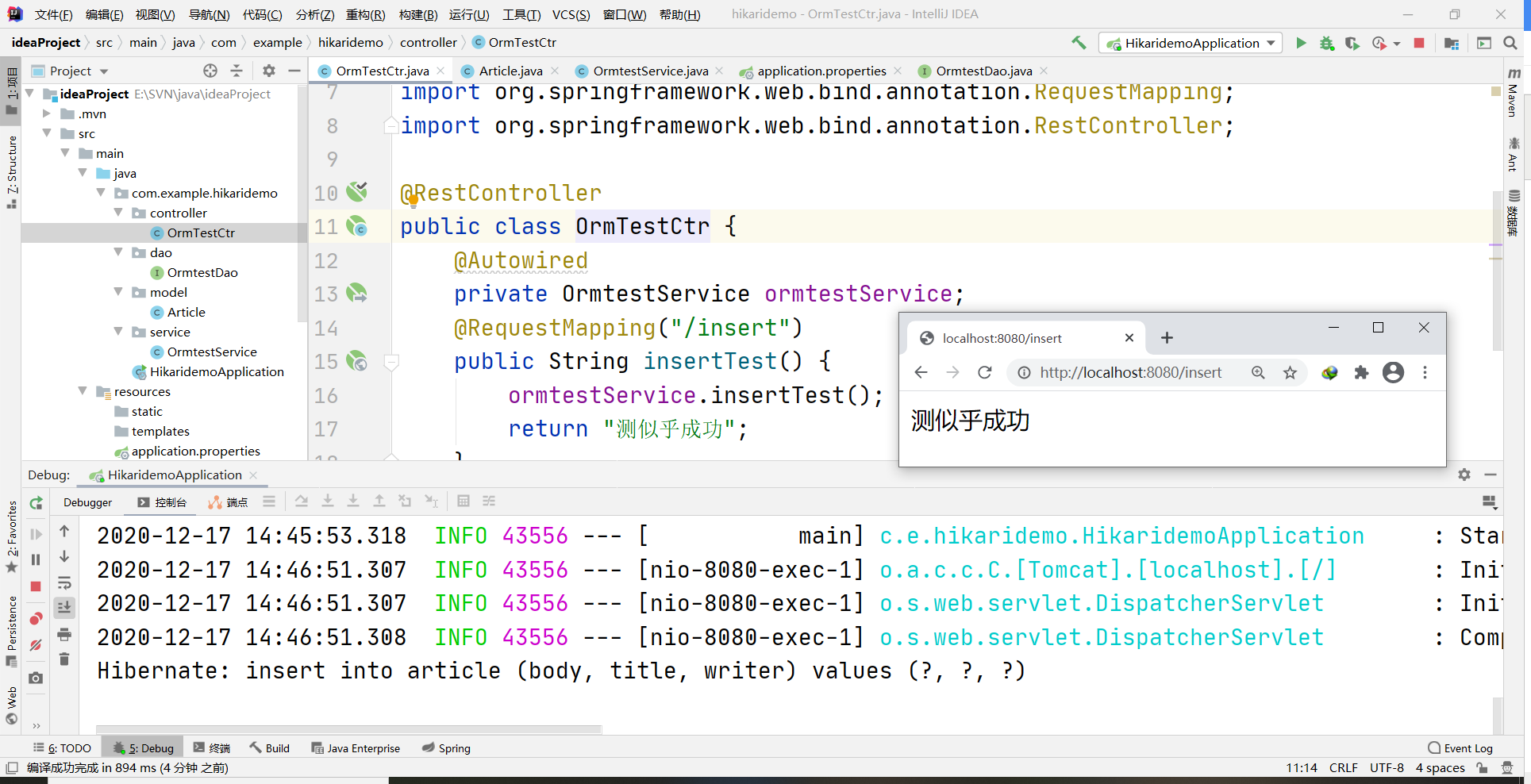 package com.example.hikaridemo.controller; import com.example.hikaridemo.service.OrmtestService; import org.springframework.beans.factory.annotation.Autowired; import org.springframework.web.bind.annotation.RequestMapping; import org.springframework.web.bind.annotation.RestController; @RestController public class OrmTestCtr { @Autowired private OrmtestService ormtestService; @RequestMapping("/insert") public String insertTest() { ormtestService.insertTest(); return "测似乎成功"; } }
