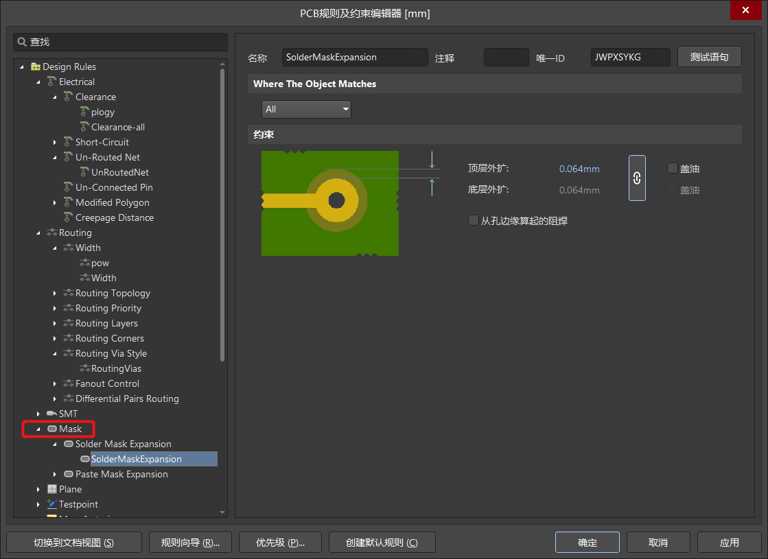 所以还是使用规则来进行设置 新添加的via就是盖油的会比较好