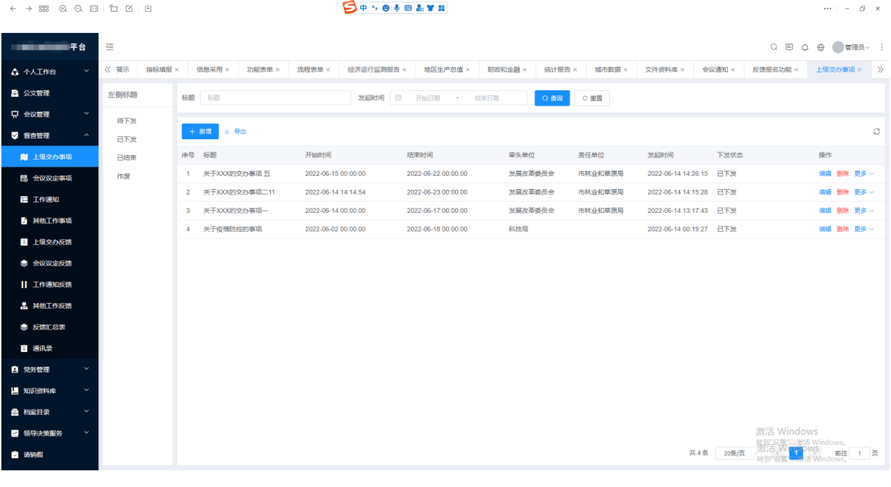 信息报送工作快速、准确反映本单位在精神文明建设中出现的新情况、新问题。所有督办的政务工作,执行情况都会随时反馈到JNPF系统,直接在门户、大屏报表了解进度情况。