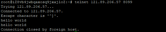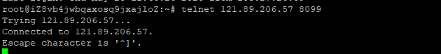 然后输入telnet ip地址加端口号(例子: 121.89.206.57 8099)
