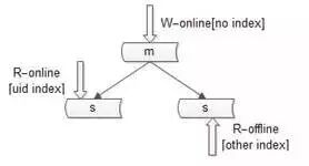 线上读库建立线上访问索引,例如uid;