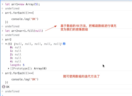 稀疏数组与密集数组 通过fill将稀疏数组改为密集数组
