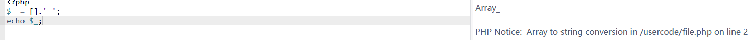 $_=[].'_'; //空数组拼接一个字符,会将空数组变成字符串Array