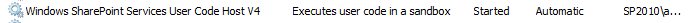 Open "servers.msc" at run windows, shortcut key is"win+R". Then go to server item "Windows SharePoint Services User Code Host V4" check it had started, if not, please start it.