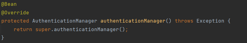 - 认证是在SpringSecurity自带的authenticationManager中执行loadUserByUsername()方法实现的,所以要在此注入authenticationManager这个bean。